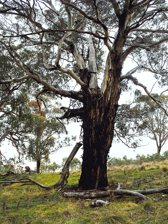 “Yeah, amazing on two fronts,” says Grant. “See that? …the regen is fantastic. But see that stick we’re talking about, it has not perished… Yes, that’s right, [this tree is near the end of its life]. Which is quite a nice thing, too, because now it’s got all those young ones underneath it. It’ll turn into hollow logs, and birds will live in it, and lizards and all that stuff.”